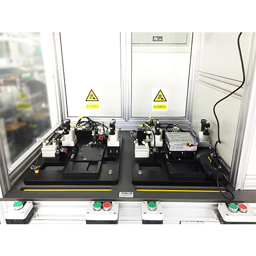 PTC加热器气密测试工装,用于测试PTC总成气密性,产品放置到定位底座上,启动设备,夹具封堵气缸推进,采用端面封堵PTC加入器水管口实现密封,然后气密测试仪器测试产品密封性。
