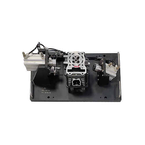 发动机缸体气密测试工装,底部采用定位结构,侧面管口采用端面封堵,夹具配有打标装置,配有集成气路块可便捷的与设备进行连接。